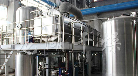 單效或多效降膜蒸發器,適用于牛奶、葡萄糖、淀粉、木糖、制藥、化工、生物工程、環保工程、廢液回收等行業進行低溫連續式蒸發濃縮,具有傳熱效率高,物料受熱時間短等主要特點,所以特別適用于熱敏性、粘滯性、發泡性等物料。